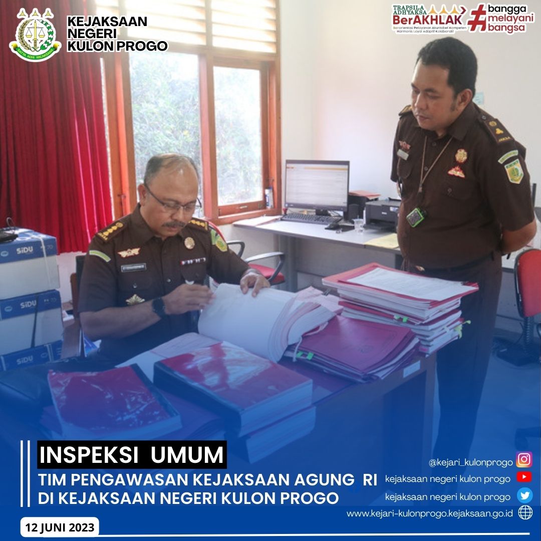Pada hari Senin, 12 Juni 2023, Inspektur I Jamwas Kejaksaan Agung RI HARUNA, S.H., M.H. beserta jajaran melakukan Inspeksi Umum di Kejaksaan Negeri (Kejari) Kulon Progo