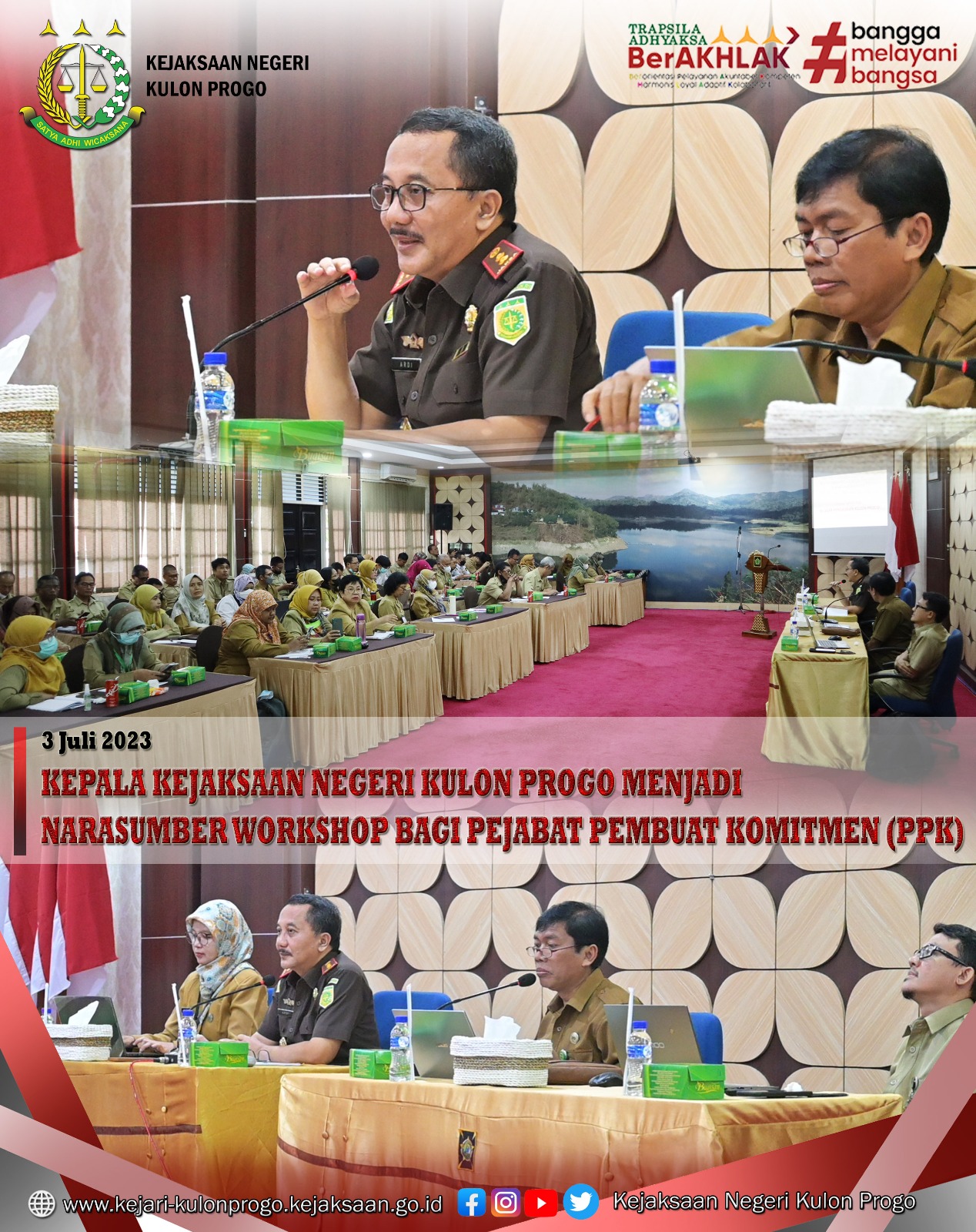 Pada hari ini Senin 3 Juli 2023 bertempat di Ruang Rapat SERMO Gedung Binangun I Kompleks Setda Kabupaten Kulon Progo Kepala Kejaksaan Negeri Kulon Progo menjadi Narasumber Workshop bagi Pejabat Pembuat Komitmen (PPK) dengan Tema "Tugas dan Kewajiban PPK Dalam Proses Perencanaan dan Persiapan Pemilihan Barang/Jasa".