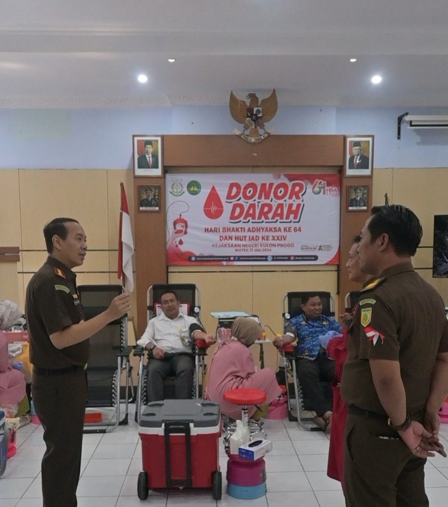 Pada Hari Rabu, 17 Juli 2024 Kejaksaan Negeri (Kejari) Kulonprogo bekerja sama dengan PMI Kulonprogo menggelar bakti sosial donor darah di Aula Kejari setempat, kegiatan tersebut dalam rangka Memperingati Hari Bhakti Adhyaksa ke-64 tahun 2024.