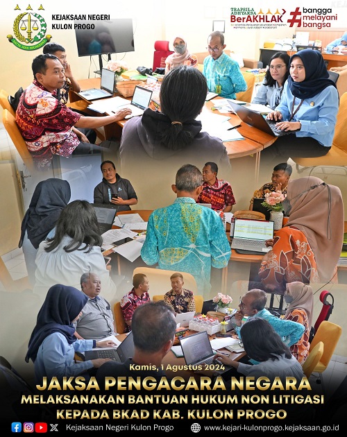 Jaksa Pengacara Negara Kejaksaan Negeri Kulon Progo melakukan Bantuan Hukum Non Litigasi kepada (Badan Keuangan dan Aset Daerah) BKAD Kab. Kulon Progo dalam Penagihan Tunggakan Pajak Mineral Bukan Logam dan Batuan (MBLB) terhadap 13 (tiga belas) wajib pajak. Kamis (01/08/2024)