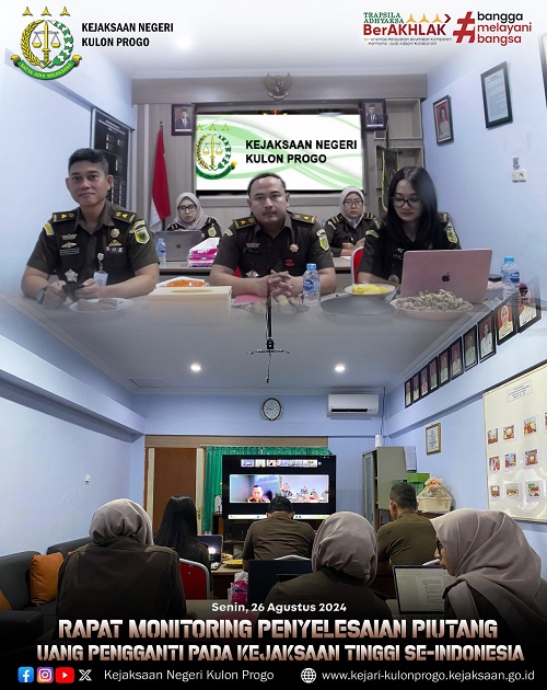 Pada hariSenin tanggal 26 Agustus 2024, Kepala Seksi Tindak Pidana Khusus Bpk Muis Ari Guntoro, S.H., M.H. bersama dengan Kepala Seksi PB3R bpk Barransyah Hendry Oktiawan Ramsi, S.H, M.H,. mengikuti rapat monitoring penyelesaian piutang Uang Pengganti yang dilaksanakan secara daring.