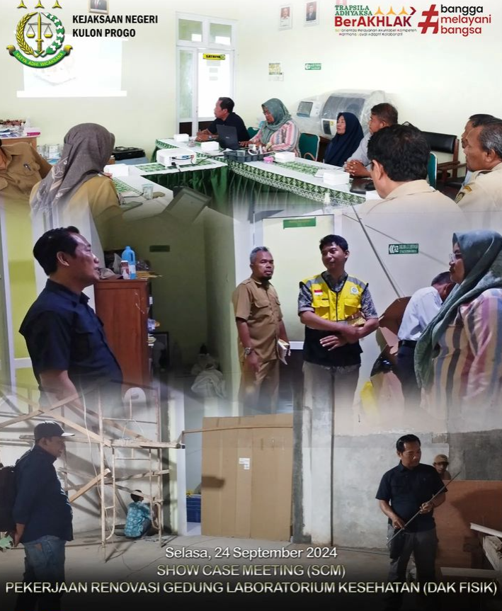 Dalam rangka monitoring dan evaluasi terhadap pelaksanaan Proyek Pemerintah Kabupaten Kulonprogo khususnya pada Bidang Kesehatan, Kepala Kejaksaan Negeri Kulonprogo yang diwakili oleh Kasi Intelijen Bapak Awan Prastyo Luhur, SH.,MH menghadiri Rapat Koordinasi dan peninjauan hasil pekerjaan pada kegiatan renovasi gedung laboratorium Kesehatan di Dinas Kesehatan Kabupaten Kulonprogo. Selasa (24/09/2024)