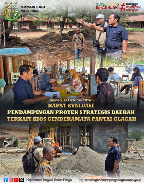 Pada Hari Selasa, 22 Oktober Kepala Seksi Intelijen Kejaksaan Negeri Kulon Progo Awan Prastyo Luhue, S.H, M.H melakukan Rapat Evaluasi Ke-7 Pembangunan Gedung Kantor-Kios Cinderamata, Tempat Ibadah, Toilet, dan Perlengkapannya pada Area Wisata Pantai Glagah.