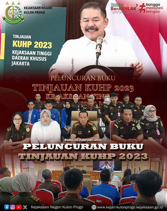 Pada hari Rabu tanggal 05 Februari 2025, Kepala Kejaksaan Negeri Kulon Progo Dr. Anton Rudiyant, SH,. MH. beserta jajaran mengikuti kegiatan Peluncuran Buku Tinjauan KUHP 2023 Kejaksaan Tinggi Daerah Khusus Jakarta melalui sarana daring.