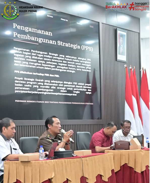 Pada hari Rabu tanggal 26 Februari 2025 pukul 09.00 s.d 11.00 WIB telah dilaksanakan Penerangan Hukum kepada Organisasi Perangkat Daerah (OPD) pemerintah daerah kabupaten Kulonprogo bertempat di Gedung Kaca Pemda Kabupaten Kulonprogo dengan jumlah peserta 100 orang, bertindak sebagai narasumber adalah Kepala Kasi Intelijen Awan Prastyo Luhur, SH., MH.