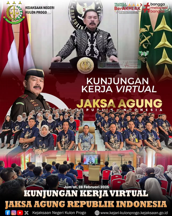 Jaksa Agung menyampaikan arahan terkait peningkatan kinerja, profesionalisme, serta integritas dalam menjalankan tugas dan tanggung jawab sebagai aparat penegak hukum. Beliau juga menyoroti berbagai isu hukum strategis yang memerlukan perhatian khusus dari seluruh jajaran Kejaksaan. Arahan tersebut menjadi pedoman bagi Kejari Kulon Progo dalam meningkatkan kualitas pelayanan hukum kepada masyarakat dan memperkuat upaya penegakan hukum yang adil dan transparan.
