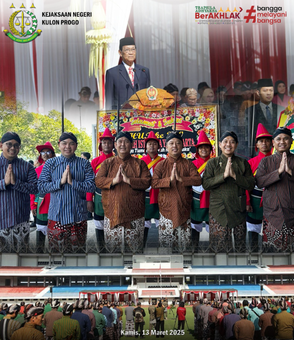Kepala Kejaksaan Negeri Kulon Progo Dr. Anton Rudyanto, SH menghadiri Upacara Peringatan Hari Jadi ke-270 Daerah Istimewa Yogyakarta yang dipimpin oleh Gubernur DIY Sri Sultan Hamengku Buwono X, Kamis pagi 13 Maret 2025 bertempat di Stadion Mandala Krida.