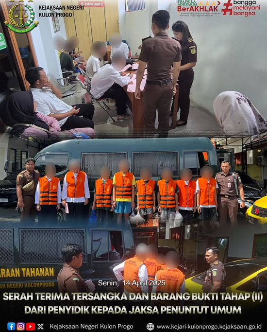 Pada hari Senin tanggal 14 April 2025 bertempat di Kejaksaan Negeri Kulon Progo telah dilaksanakan Penyerahan Tersangka dan Barang Bukti (Tahap II) oleh Penyidik Polres Kulon Progo kepada Kepada Kejaksaan Negeri Kulon Progo.