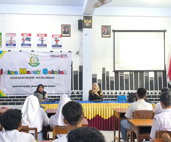 Bahwa pada hari ini Kamis, 17 April 2025 pukul 09.00 s/d 11.00 WIB Kejaksaan Negeri Kulon Progo pada Seksi Intelijen Melaksanakan Kegiatan Penyuluhan Hukum (Jaksa Masuk Sekolah) di Aula SMK Muhammadiyah 2 Wates dengan jumlah peserta sekitar 100 orang, sebagai pemateri dalam kegiatan tersebut adalah Yoverida Livenni, S.H Jaksa Fungsional Kejaksaan Negeri Kulon Progo. Materi yang disampaikan dalam kegiatan tersebut adalah Kenakalan Remaja.