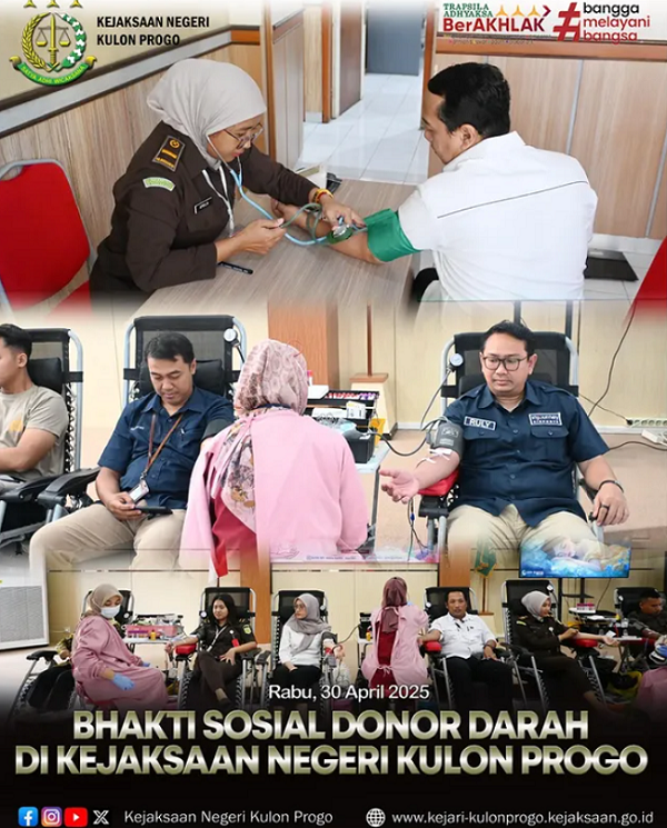 Bhakti sosial ini memperkuat upaya Kejari Kulon Progo dan INKAI Cab. Kulon Progo mengambil peran aktif mengajak masyarakat yang lebih sehat dan berdaya, Kejari Kulon Progo menggugah kesadaran sosial mayarakat, donor darah merupakan sebagai bagian dari gaya hidup sehat sekaligus aksi kemanusiaan yang menyelamatkan banyak jiwa. Karena dari setiap tetes darah yang diberikan, ada kehidupan baru yang bisa terselamatkan.