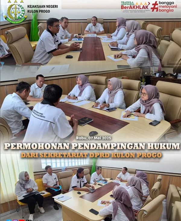Pada Rabu, 07 Mei 2025 Kajari Kulon Progo Dr.Anton Rudiyanto,SH,MH beserta Jaksa Pengacara Negara mengikuti Pemaparan Permohonan Pendampingan Hukum dari Sekretariat DPRD Kab.Kulon Progo terkait kegiatan Pengadaan Barang dan Legal Drafting Raperda Tahun Anggaran 2025.