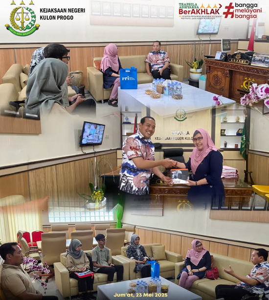 Pada Hari Jum'at tanggal 23 Mei 2025, Kepala Kejaksaan Negeri Kulon Progo Dr. Anton Rudiyanto, SH., MH,. beserta jajaran menerima audiensi dari Radio Republik Indonesia (RRI) Yogyakarta