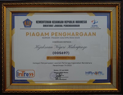 Rabu (07/06) Kejaksaan Negeri Kulon Progo meraih piagam penghargaan dari KPPN Wates dalam Katagori P ...