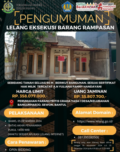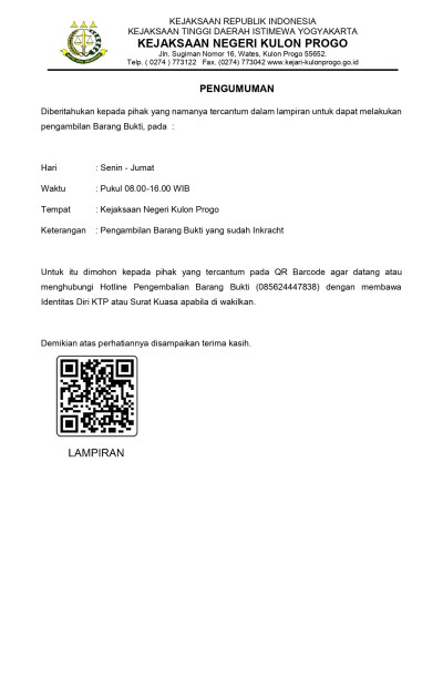 PENGUMUMAN....!!!Kejaksaan Negeri Kulon Progo akan melaksanakan lelang Eksekusi Barang Rampasan sebi ...